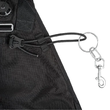 The Adjustable Bungee System can also be quickly changed between Dive Rite’s standard ring bungee system, loop bungees with a snap, or traditional loop bungees. Simply unweave the bungee, add or remove hardware as necessary, and re-weave. The bungees can be easily attached to any of Dive Rite’s sidemount harnesses using the daisy chain webbing attachment point. Alternatively they can be attached to any small D-ring or quick link attached to the side of a standard backplate or harness.