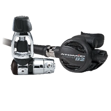 Atomics B2 Regulator is the perfect combination of comfort, performance, and style. Ergonomically designed to be the world’s most comfortable second stage, the B2 is the next generation of the highly acclaimed Atomic Aquatics B1 regulator. The B1 regulators have received more accolades from the diving press and independent test reviews than any other regulator in history for both performance and ergonomics. The B2 shares the identical first and second stage design and performance as the T1, the most notable difference being the metal (titanium) used in the T1. The second stage is so light in your mouth it almost floats.