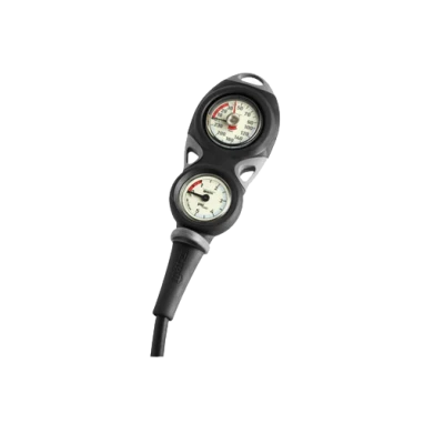 This very accurate oil filled depth gauge reads depth from 0′ to 230′ and comes equipped with a maximum depth indicator needle (MDIN). The MDIN is pushed by the gauge depth needle until the diver meets their maximum depth. The MDNI will remain at the maximum depth reached for the duration of the dive to indicate the diver’s deepest depth reached during the dive. This feature allows the diver to not record that depth while diving yet will be available upon surfacing for later calculations for repetitive dives. Depth Gauge is color coded for easy and safe reading at a glance. Depth Gauge has a 0′ to 230′ readout with a safety red color-coded section from 0′ to 30′. The impact-resistant boot has multiple eyelets for attachment of clips or lanyards to keep the gauge close at hand and from dragging over the environment.