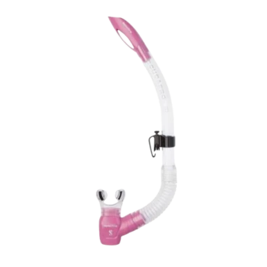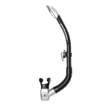 This snorkel is tops when it comes to breathing comfort and ease of clearing. The large-bore upper tube is rigid for stability and allows plenty of airflows, while the corrugated lower tube can be easily positioned when being used, and hangs out of the way when not being used. The semi-dry top helps prevent water from entering, the purge valve positioned at the lowest point makes quick work of any water that does sneak in.