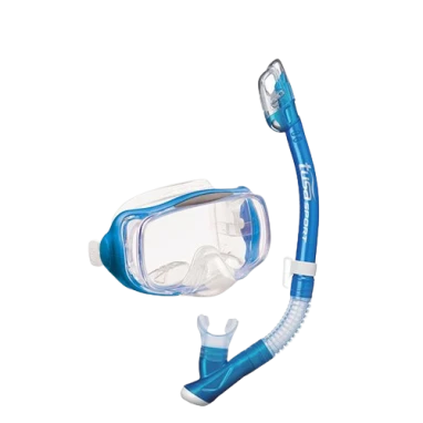 The UC-3325 Imprex 3-D Dry includes a single window mask that incorporates 2 side windows for enhanced panoramic and peripheral vision, TUSA’s patented Hyperdry nose-purge system which allows for easy, no-nonsense clearing of the mask with a single exhalation, EZ adjust buckle technology, ClearVu tempered glass lens and pure silicone skirt and strap. The dry snorkel features TUSA Hyperdry Elite dry top technology (pat p) that stops water from entering into the snorkel, a drain chamber and purge valve for easy clearing and pure silicone flex neck and mouthpiece. The UC-3325 is a good match with our UF-14Z or UF-21 fins.