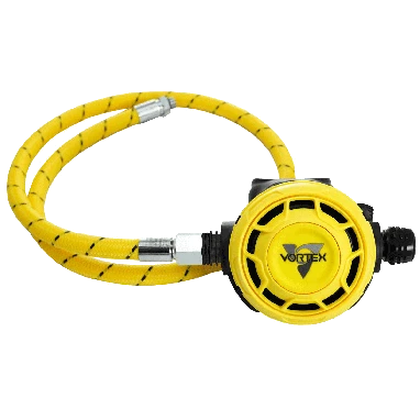 The Vortex Octo is pneumatically balanced for superior breathing performance. The Octopus will equal the performance of your primary second stage. It also is equipped with a control knob that allows the diver to dial in the inhalation resistance.